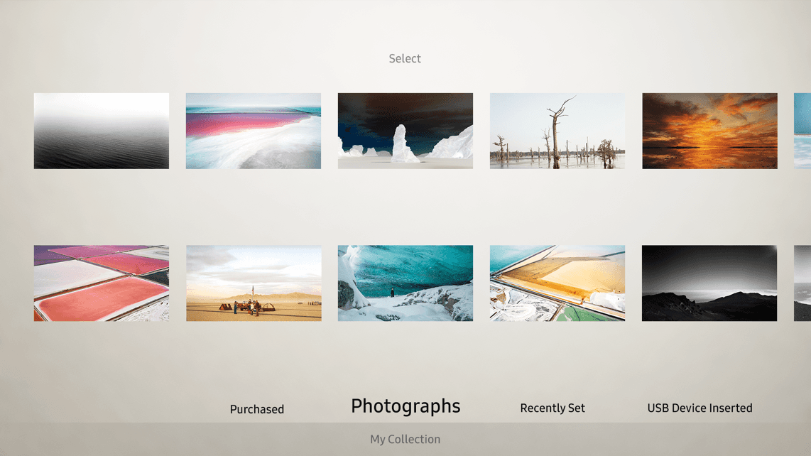 Samsung's Frame TV, first released in June 2017, reimagines the television as an object that seamlessly integrates into personal spaces. When "Art Mode" is activated, the TV resembles a picture frame mounted on the wall. Rather than defaulting to a black screen like traditional TVs, The Frame transforms into an art display, allowing users to choose from over 100 custom-designed digital artworks or showcase their personal photos and photography.