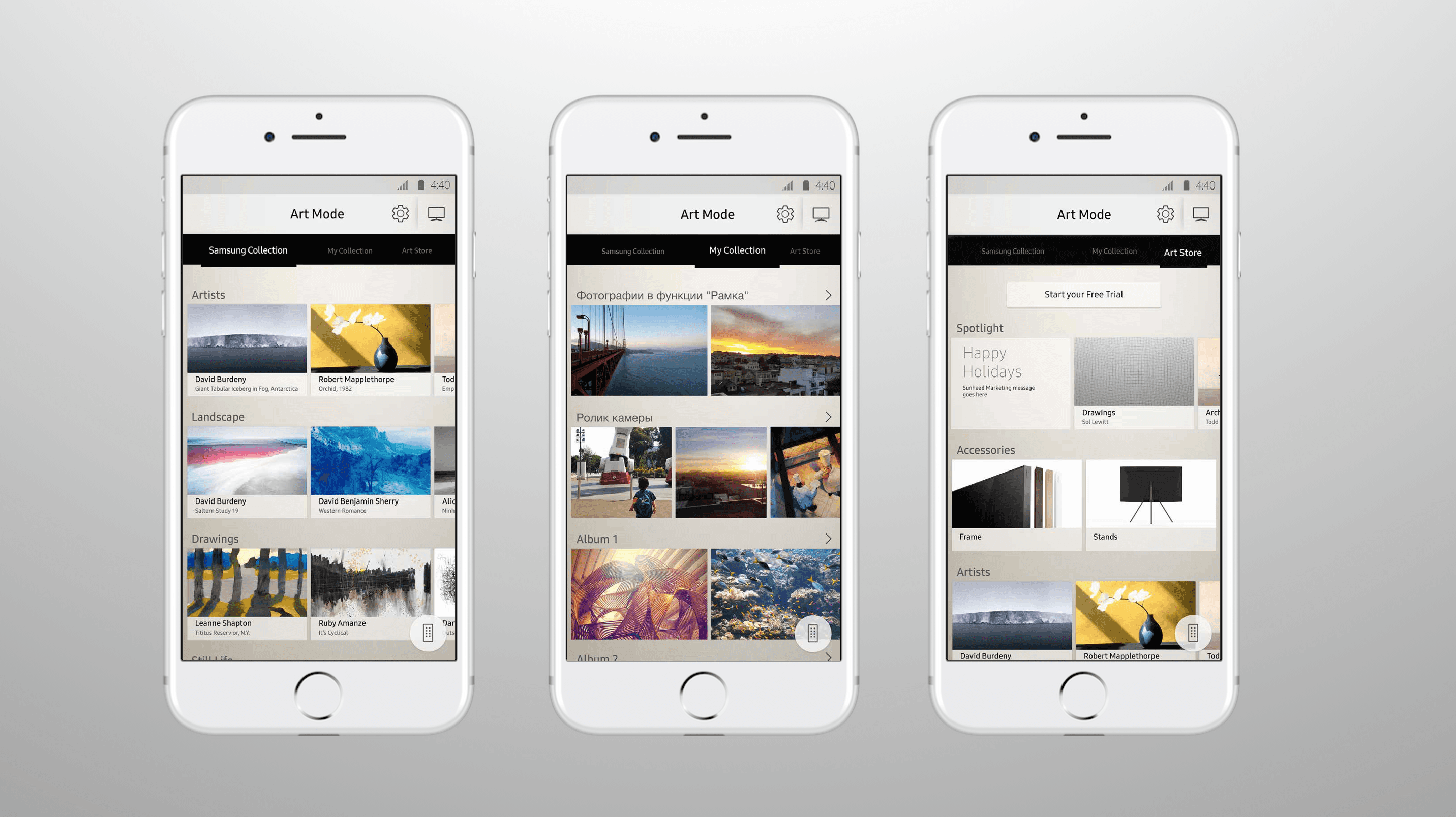 Frame Mobile is a companion app developed alongside Frame TV, extending the experience from TV to mobile, providing effortless browsing artworks at your finger tips, photo uploading, and customization features to express your lifestyle and home decor.